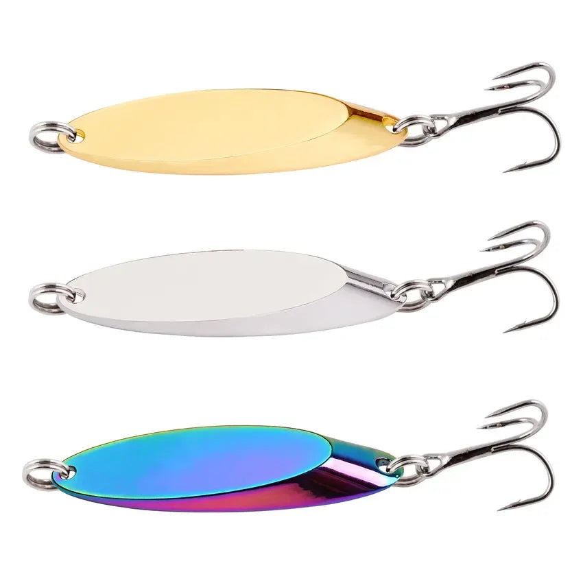 Unlock the secret to irresistible fishing with our Fishing Metal Spoon Lure – a dynamic lure meticulously crafted to mimic the movement and appearance of small baitfish or prey, captivating fish of all species. Featuring a curved, spoon-shaped metal blade, this lure rotates and flashes in the water, generating vibrations that lure fish with ease. Renowned for its versatility and effectiveness, the metal spoon lure is a must-have for anglers targeting bass, trout, pike, and more.