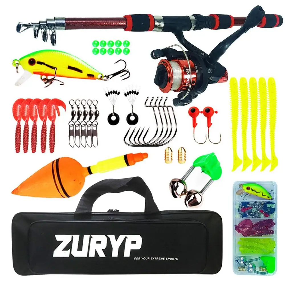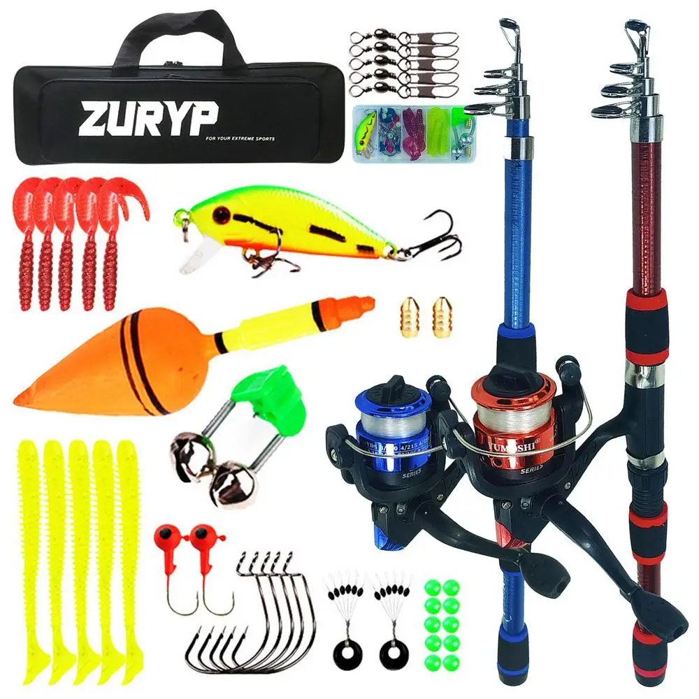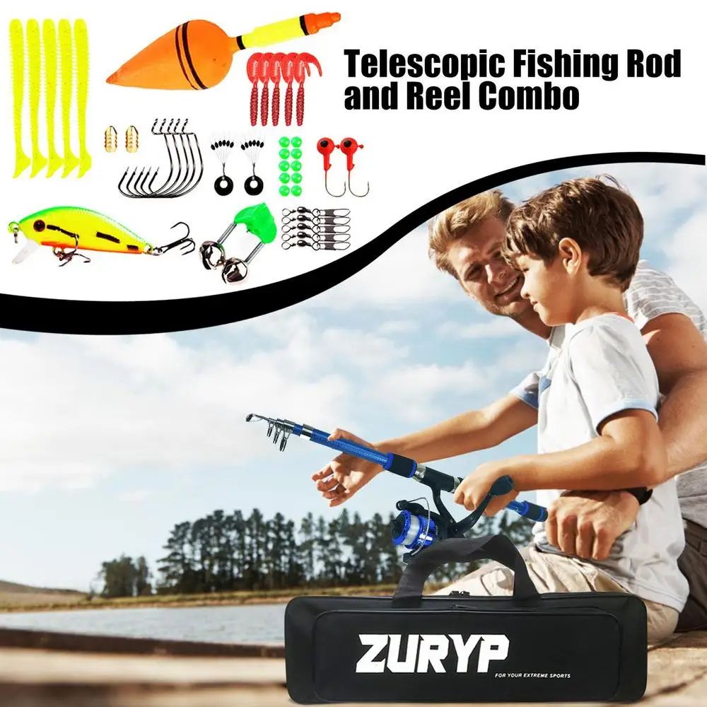 Kids Fishing Pole Set Full Kits with Telescopic Fishing Rod and Spinning Reel Baits Hooks Saltwater Portable Travel Pole Set
